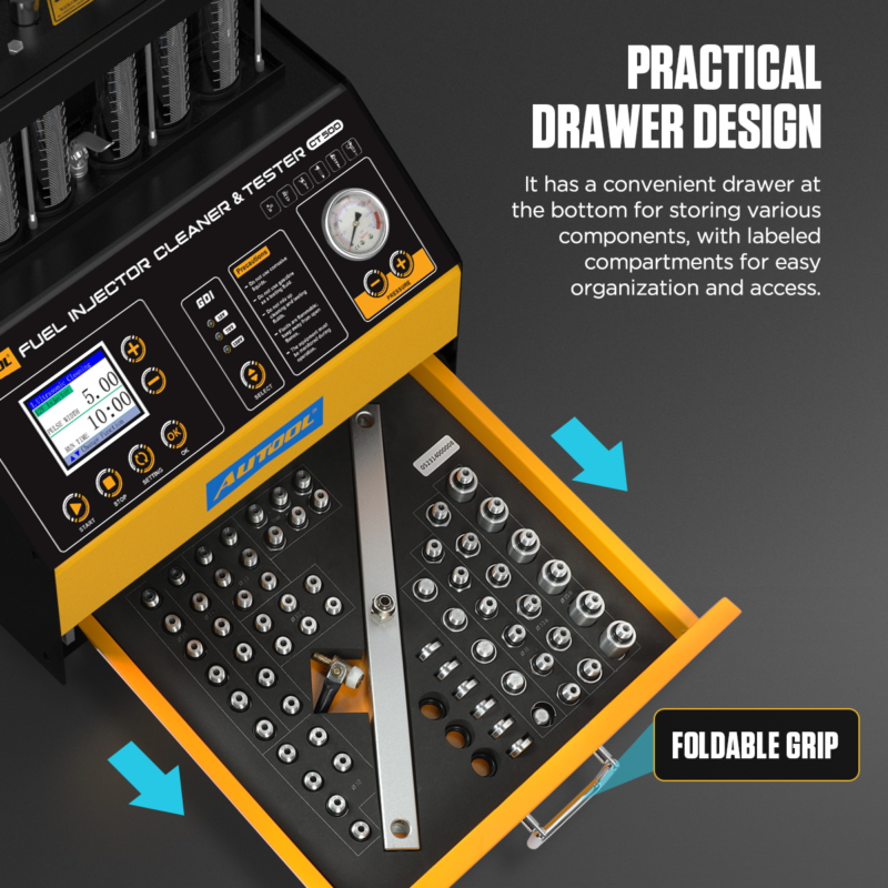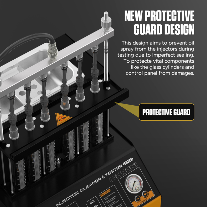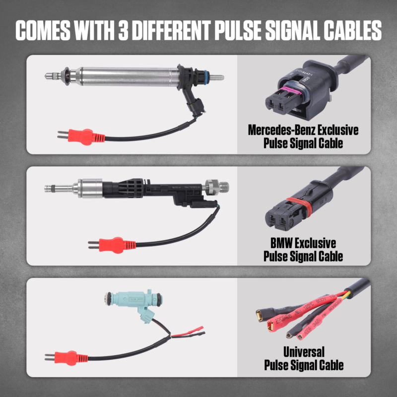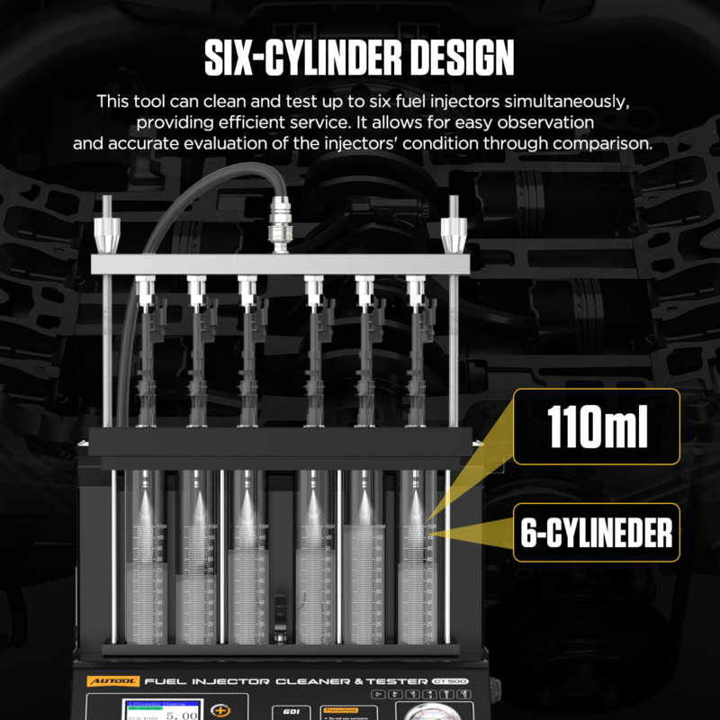 TESTDYNAMIK UND GDIDer AUTOOL CT500 ist ein Durchbruch in der Diagnostik der Direkteinspritzung. Im Gegensatz zu Standard-Reinigungsgeräten erzeugt der CT500 ein Steuersignal, das exakt auf die Spezifikationen von Hochdruck-Einspritzdüsen abgestimmt ist, was deren sicheres Öffnen und eine präzise Leistungsprüfung ermöglicht. Wichtige diagnostische Aspekte: