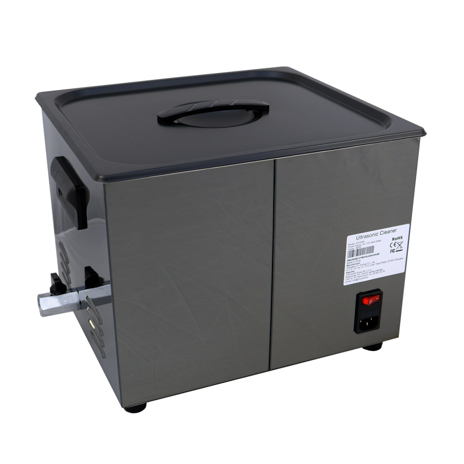 Der Ultraschallreiniger GX60A ist mit einem Tank aus hochwertigem Edelstahl SUS304 mit einem Fassungsvermögen von 15 Litern ausgestattet, einer Ultraschallleistung von 360 W und einer Heizleistung von 400 W.