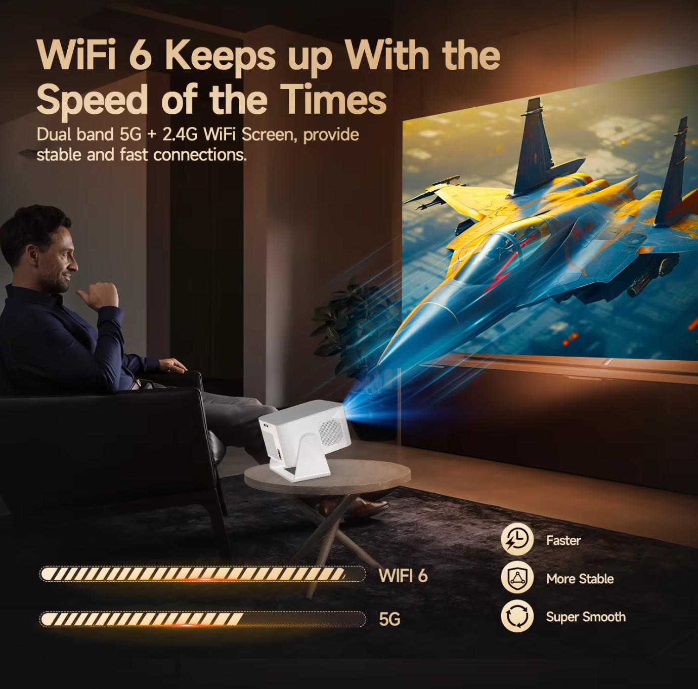 ✅ Ja, der Projektor hat Bluetooth 5.4, was den Anschluss von kabellosen Lautsprechern oder Kopfhörern ermöglicht.
